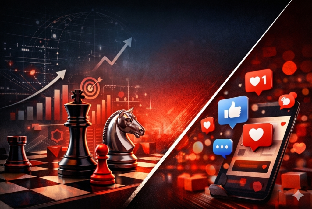Quando o empreendedor reduz marketing à presença digital, ele passa a operar reagindo ao algoritmo em vez de construir uma estratégia de crescimento. O resultado costuma ser esforço constante com retorno instável.